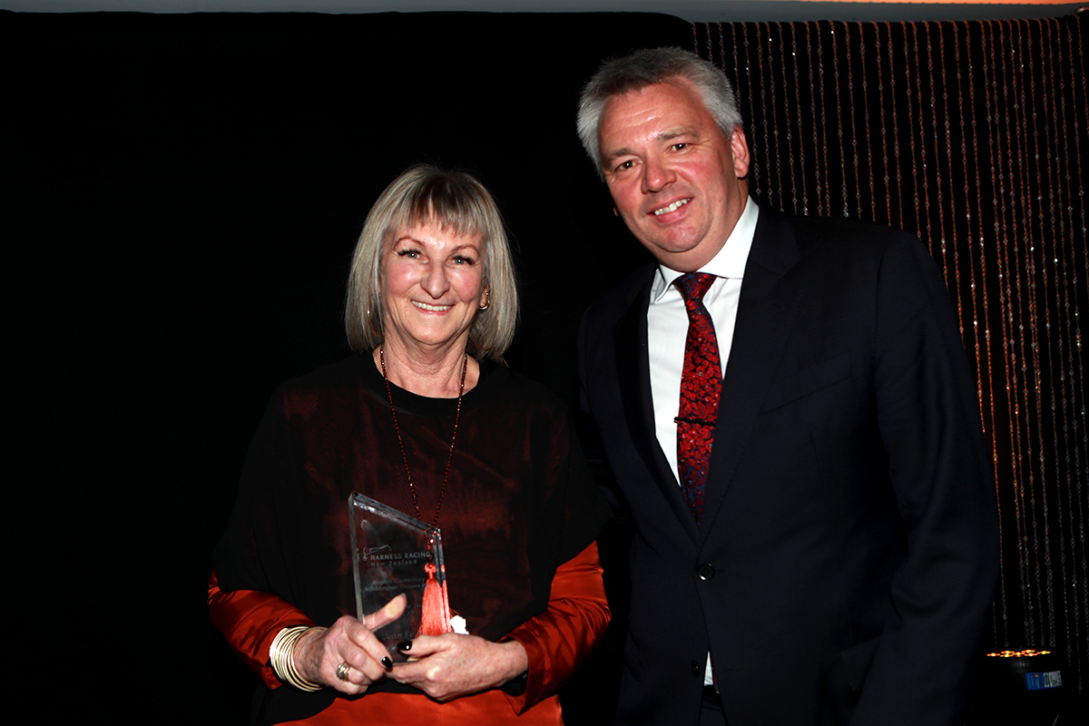 The 2018-19 Airpark Canterbury & Addington Raceway Owners Pass Owner Of The Year Victorian Jean Feiss collected top honours at Saturday’s Harness Racing New Zealand 2018-19 Awards.