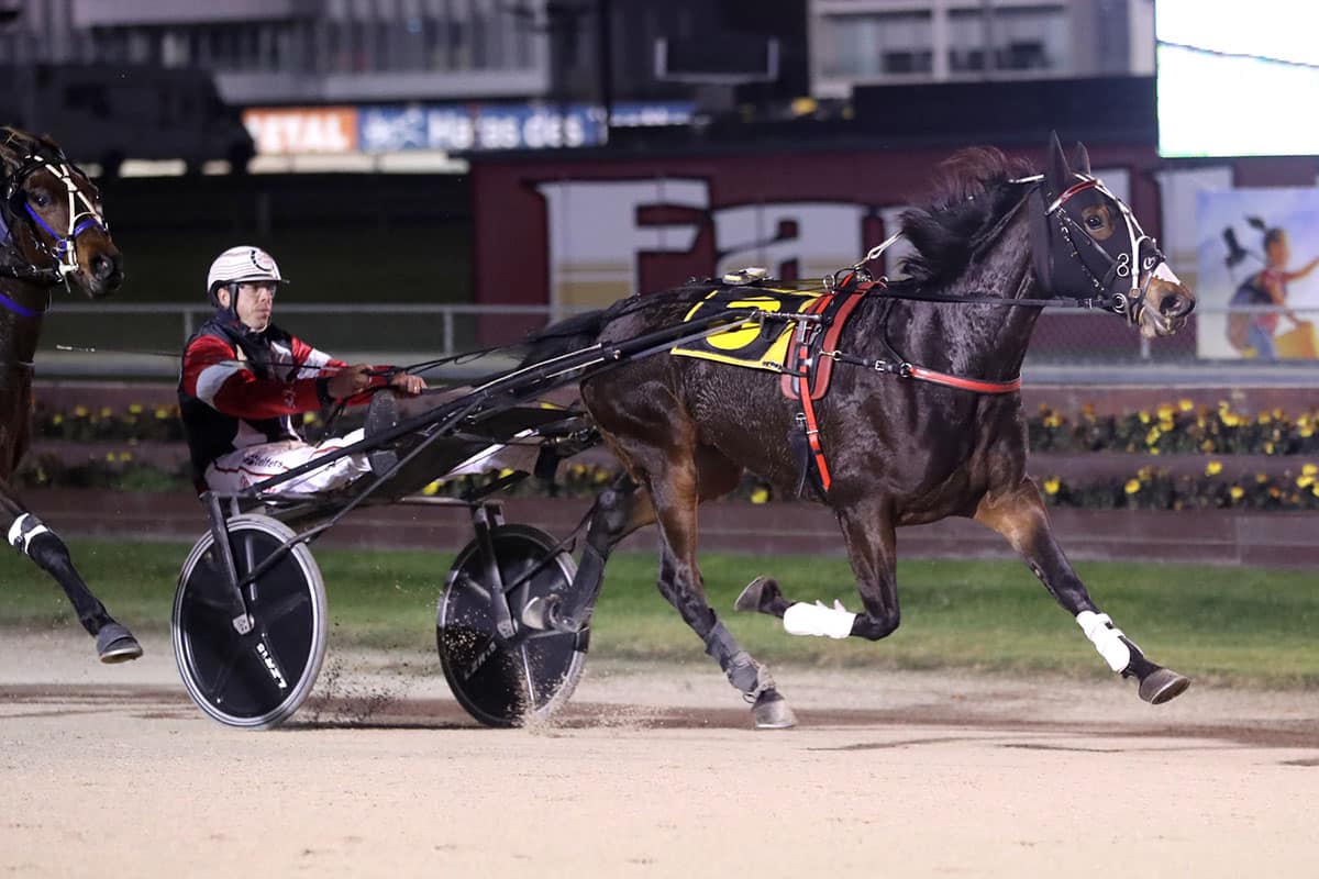 Driver John Dunn took Ya Rite Darl to the lead in the middle stages on Friday night’s feature and from there, victory never looked in doubt.